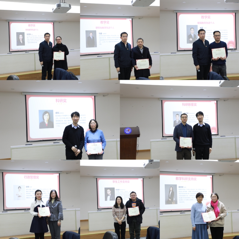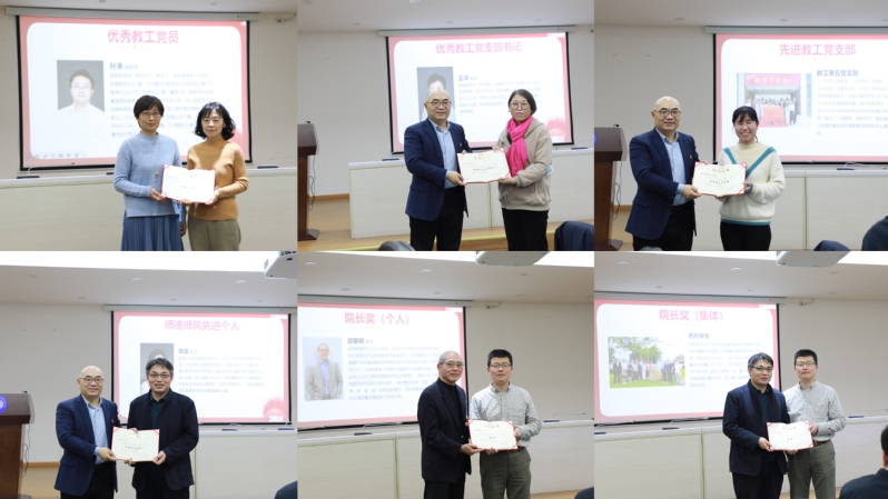 会上还表彰了一批2023年度在师德师风、教学、科研、管理、党建等方面表现突出的优秀个人和先进集体。下注足球 领导分别为本科教学先进个人张雪梅、研究生教学先进个人马国、继续教育先进个人施军、科研奖获得者余科、科研新星奖获得者李付琸、行政管理奖徐琛、学生工作支持奖范佳君、教学科研支持奖姜琳琳、优秀教工党员孙涛、优秀教工党支部书记王洋、先进教工党支部教工第五党支部、师德师风先进个人蒋晨、院长奖(个人)获得者邵黎明、院长奖(集体)获得者药剂学系,以及2023年考核优秀教职工蒋晨、陆伟跃、陈钧、孙涛、付伟、谢琼、古险峰、陈道峰、孙逊、熊娟、张雪梅、茅以诚、辛宏、李嫣(药分)、史训龙、相小强、马国、王璐、杨萍、俞媚华、汪亚勤、曹旖、姜慧芳、王丽敏、郭晓敏、包燕、张艺凡、陈蓓蓓等老师分别颁发了荣誉证书并宣读颁奖词。因为有老师们的辛勤奉献,才有下注足球 的精彩荣耀!