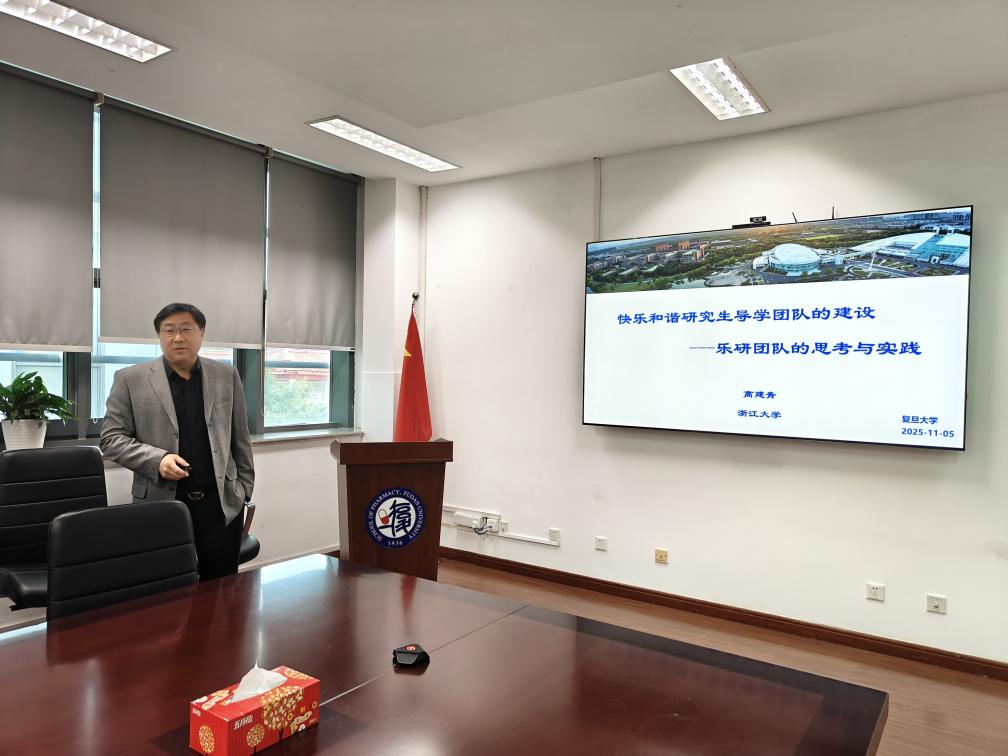 随后,高建青教授以“快乐和谐研究生导学团队的建设”为核心,结合自身数十年育人实践经验,深入剖析当前研究生导学关系中的典型问题与深层症结。他从导师角色面临的时代挑战、“五好导学团队”的核心内涵、新时代药学人才培养目标等维度,系统分享了构建优质导学关系的方法与技巧,着重强调导师需秉持真诚平等的态度对待学生,营造开放包容、积极互动的师生交流氛围,为构建良好导学关系筑牢根基。
