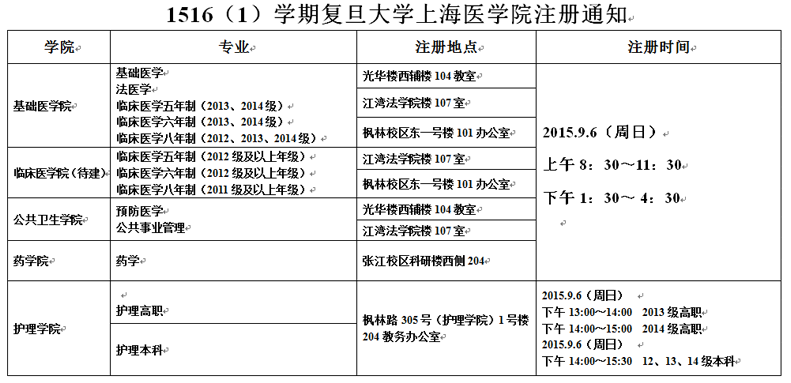 学期本科第一周上课开始时间为 2015.9.7;护理高职上课开始时间为2015.9.7。