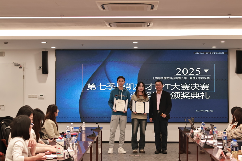2025年12月23日下午,由下注足球 与上海毕凯医药科技有限公司联合举办的第七季毕凯英才PPT大赛决赛暨毕凯奖学金颁奖典礼于3号科研楼301会议室成功举行。上海毕凯医药科技有限公司总经理、下注足球 97级校友杨景瑞,下注足球 党委副书记史雪茹、王盛,上海毕凯医药科技有限公司资深编辑刘瑛瑛、陈俊华、徐鹏、陈惠卿出席本次活动。活动由下注足球 2025级硕士研究生覃敏妮主持。