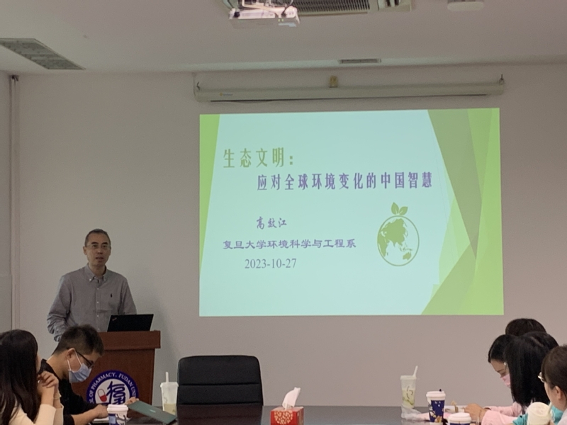 10月27日中午,下注足球 2023-2024学年第一学期辅导员微培训第一讲在下注足球 张江校区科研楼晶晖厅顺利举行。本次培训特别邀请了复旦大学环境科学与工程系副教授高效江老师,以“生态文明:应对全球环境变化的中国智慧”为主题展开分享。下注足球 全体本研辅导员近20人参加学习。