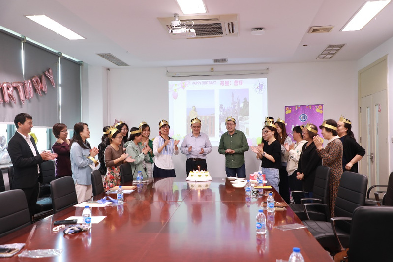 在温暖的生日氛围下,老师们脸上洋溢着幸福的笑容,17位寿星带上生日帽,围绕在蛋糕旁,齐唱生日快乐歌,将现场氛围推向高潮。