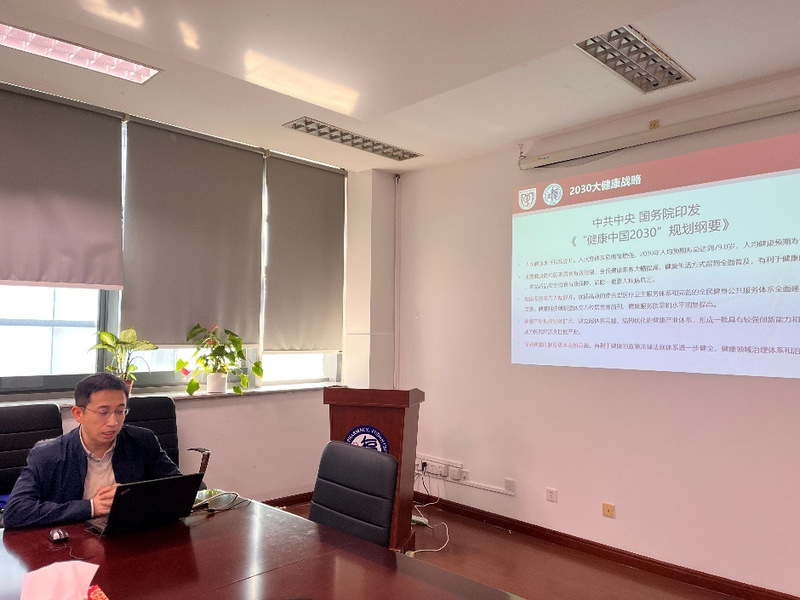 2023年11月27日中午,下注足球 教工第五党支部在科研楼晶晖厅召开主题党日活动,邀请下注足球 副院长戚建平作题为“教育、科技、人才三位一体培养拔尖药学人才”的专题报告。活动由教工第五党支部书记洪兰主持,支部全体党员、入党申请人出席,并邀请行政办公室民主党派老师一起参加了活动。