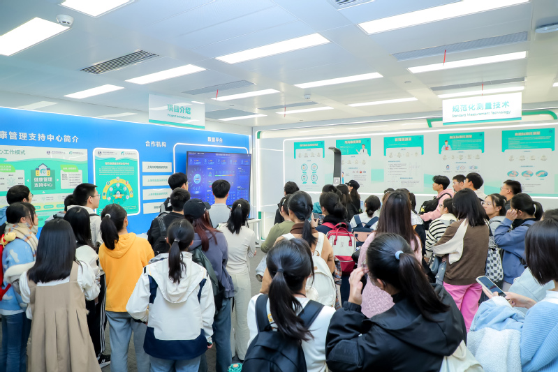 同学们参观健康管理支持中心模型的概念模型