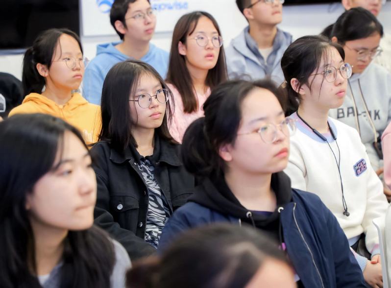 “分享座谈”环节分四步骤进行。首先招聘团队人力资源经理朱文婷向同学们概述企业的基本情况,展示企业的全球化、市场化、多元化以及前瞻性,并由此引到“在阿斯利康开启职业旅程”一栏,介绍企业的薪酬福利、培训生项目和招聘流程,指出企业通过“经历、交流、学习”向大家提供完善的人才发展资源和平台,助力培训生培养多元技能。