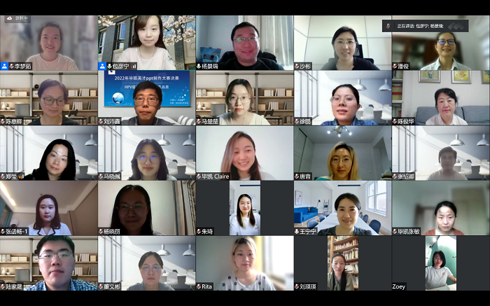 通过紧张的计分环节,杨景瑞校友宣布了此次大赛的获奖情况:20级药物化学硕士张登高同学荣获一等奖,19级药剂学博士刘沛鑫同学荣获二等奖,三等奖获得者为19级药理学硕士张绍卿同学、21级药剂学硕士马楚楚同学和18级药学本科生张函畅同学。最后,所有列席活动的领导、嘉宾和评委团成员及参赛选手们在线上进行了合影留念。第四季毕凯英才PPT大赛决赛活动圆满结束。