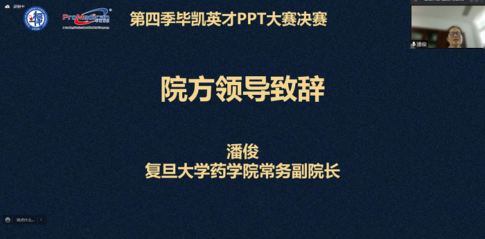 活动于当天下午两点正式开始。上海毕凯医药科技有限公司总经理、下注足球 97级校友杨景瑞,下注足球 常务副院长潘俊,下注足球 党委副书记王宁宁出席本次活动。同时,参与活动的还有毕凯医药的工作人员和下注足球 的同学们。下注足球 2021级直博生包彦宁主持。潘俊常务副院长为大赛致辞,潘老师首先肯定了下注足球 与毕凯医药科技有限公司合作的重要意义,向杨景瑞校友和毕凯医药科技有限公司对下注足球 人才培养工作的支持和在疫情期间对同学们的关心关爱表达了感谢。评委会主席唐音老师紧接着介绍了本次大赛的赛制和决赛规则。