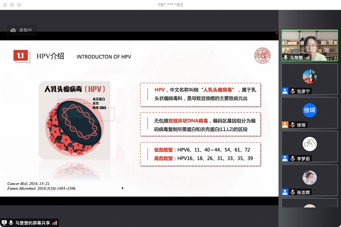 随后比赛开始。入选决赛的10位同学围绕“HPV疫苗的研发进展及品质”这一主题依次展示、讲解自己精心设计的PPT。每位参赛选手发挥自身优势,展示内容丰富准确、讲解过程生动稳健,给在座的评委、老师和同学们带来了一场精彩的视听盛宴。评委团老师也在每位选手展示后分别给予点评。展示环节结束后,杨景瑞校友在发言中表示,感谢下注足球 这么多年来对PPT大赛举办的支持,他感慨到“江山代有才人出,长江后浪推前浪”,对10位参赛选手充分的准备和优秀的表现给予了称赞。他鼓励同学们在学习、科研中独立思考,充分发挥自身兴趣和专业特长,并询问关心了各位同学在疫情期间的学习、工作和生活情况。同时,杨景瑞校友期待在下一季的毕凯英才PPT大赛决赛中,能有机会来学校与同学们面对面的交流互动。