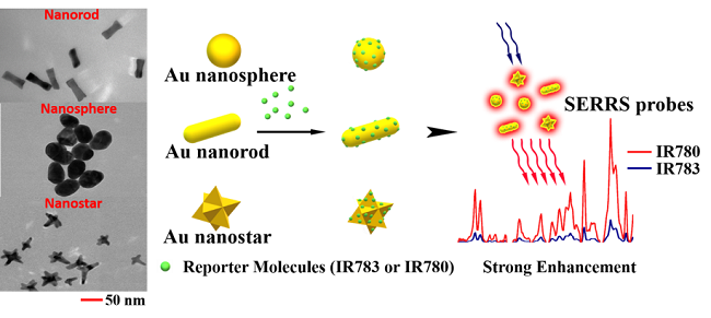 表面增强共振拉曼光谱 (SERRS) 由于具备高灵敏度,高信号稳定性,特征指纹峰明显等优势,在肿瘤早期诊断及引导手术切除等方面展现巨大潜力。下注足球 李聪课题组张云飞同学经研究发现当使用七甲川花箐衍生物(IR780和IR783)作为SERRS报告分子时,报告分子化学结构的微小改变可引起SERRS信号的显著增强(IR780较IR783的增幅可达到14倍)。此项研究证明:优化花箐类衍生物化学结构是提高SERRS纳米金探针灵敏度的有效途径。上述工作已发表在Journal of Innovative Optical Health Sciences杂志上。