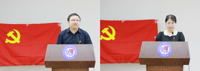 接着,范佳君老师作为新党员代表发表入党感言。他表示经过疫情的洗礼,自己对党有了更深刻的认知,也更加坚定了入党初心。作为科研教学一线的青年教师,会自觉担负起科教兴国的使命,向着文化因科教而续,国家因科教而兴,民族因科教而立的方向努力奋进。随后,路若楠同学作为学生代表结合学习贯彻习近平新时代中国特色社会主义思想主题教育发表入党感言,认为要牢牢把握“学思想、强党性、重实践、建新功”的总要求,理论联系实际、理论指导实践,把入党誓词作为自己的崇高追求,毕生修养和终身实践。