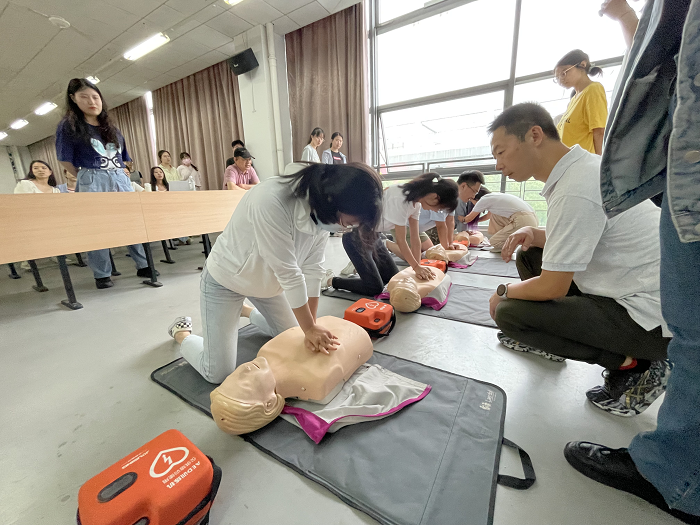 本次培训采用理论讲解、现场演示和实践操作相结合的方式,重点培训了心肺复苏、自动体外除颤器(AED)、海姆立克急救法等急救内容。