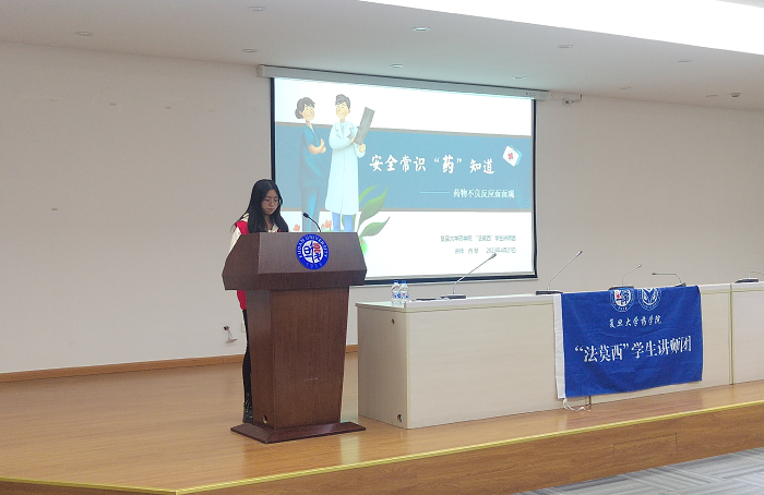 紧接着,2022级生药学系硕士研究生冉琴带来了课程《安全常识“药”知道——药物不良反应面面观》。她通过两个生动的案例讲解,以卡通图片故事的形式,向大家解释了为什么布洛芬在发挥解热镇痛作用的同时会带来胃肠道不良反应,以及过敏反应发生的机制,帮助大家进一步了解了出现不良反应的原理。同时系统地介绍了日常药物不良反应的常见临床表现及其分类,出现不良反应的原因和应对措施,让大家进一步正确认识药物不良反应,“见招拆招”,保障日常用药安全。