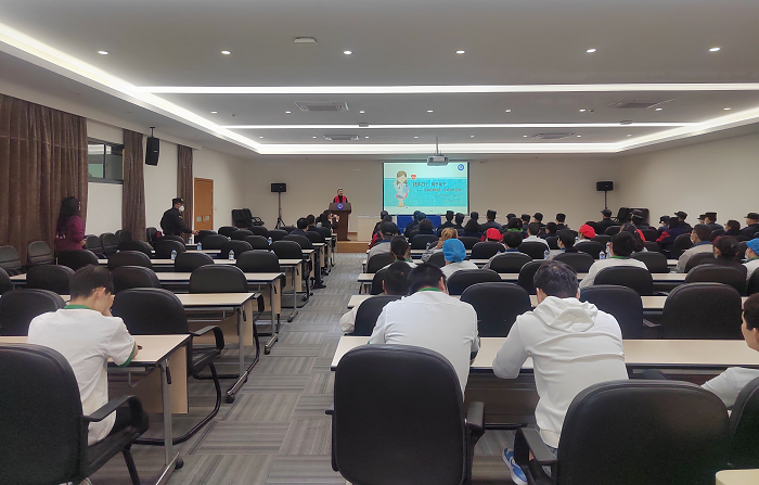 2023年4月27日下午,下注足球 “法莫西”学生讲师团面向张江校区后勤保障人员开展日常药物合理使用科普讲座。逾50位物业管理人员、食堂服务人员、安保队员等参与。